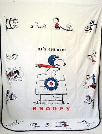 アメリカ西海岸・カリフォルニア州で見つけました・・『スヌーピー・フライングエース』&ピーナッツの仲間たちの1968年製・ヴィンテージ・USEDベッドスプレッド(ベッドカバー)です。