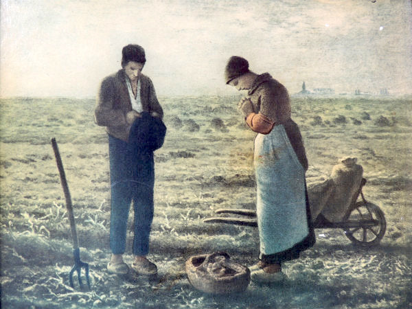 “晩鐘”は、バルビゾンの馬鈴薯畑で農作業をする夫婦が、教会から聞こえる夕刻のアンジェラスの鐘に合わせて祈りを捧げている・・・ミレーの有名な作品です。