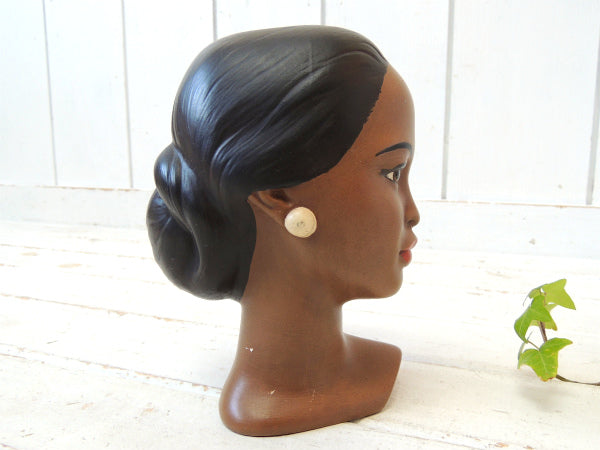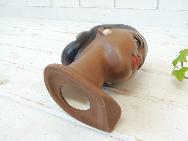 ポリネシアン女性・セラミック製・ヴィンテージ・バストヘッド・人形・フラヘッド・ドール USA