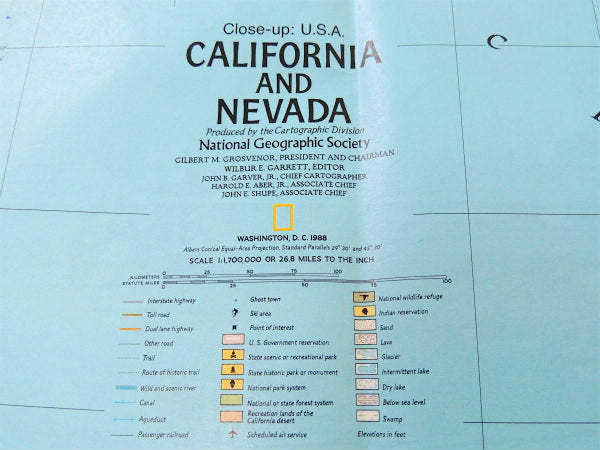 ナショナル ジオグラフィック カリフォルニア州&ネバダ州・80's ヴィンテージ・マップ・地図