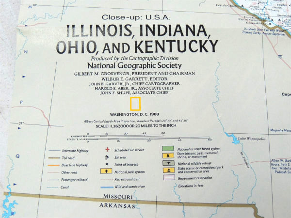 ナショナル ジオグラフィック オハイオ州&インディアナ州 US・80's ヴィンテージ・マップ・地図