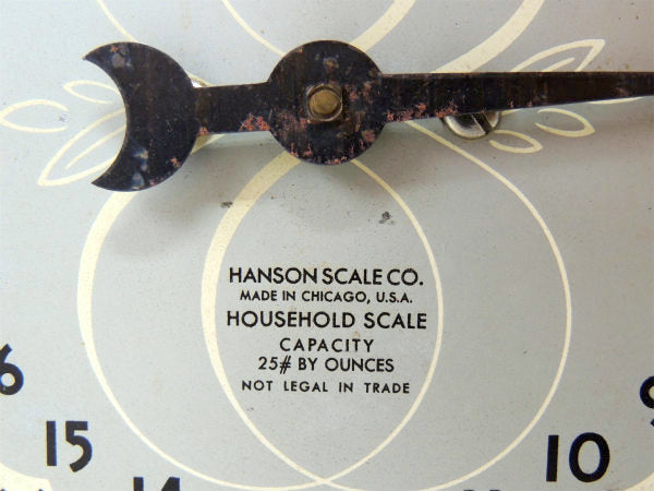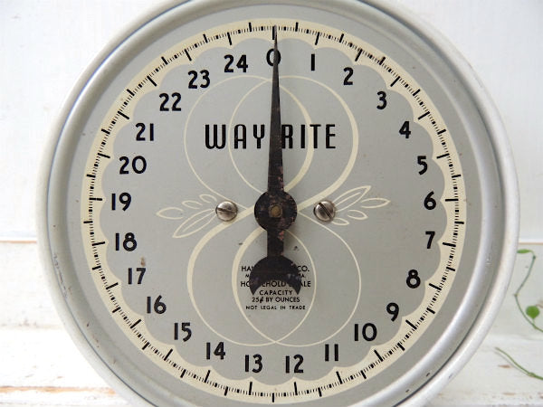 文字盤に【WAY RITE /HANSON SCALE CO. /MADE IN CHICAGO , U.S.A. /HOUSEHOLD SCALE /CAPACITY 25#BY OUNCES NOT LEGAL IN TRADE】と英文字が入っております。