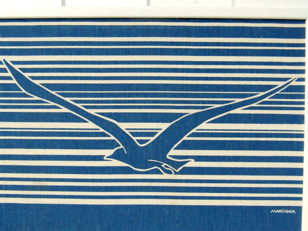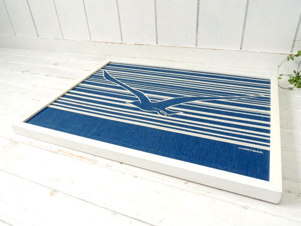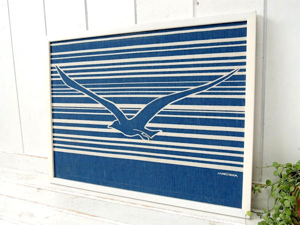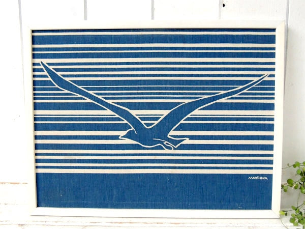 【Marushka】カモメ柄・ファブリック製・ヴィンテージ・アートフレーム・ウォールアート・壁飾り