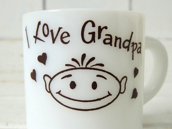 白いミルクガラスベースに、スマイルフェイス&ハートマーク&【I Love Grandpa(おじいちゃん愛してる)】のブラウン色の文字プリントが入っています。