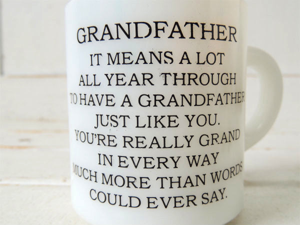 【GRANDFATHER】ミルクガラス製・ビンテージ・マグカップ・敬老の日・グランパ・食器 USA