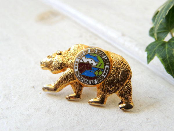 アメリカ西海岸・カリフォルニアで見つけました・・”ビッグベアシティ カリフォルニア州”お洒落な・グリズリーモチーフのピンズです。 USA・ヴィンテージ・グリズリー(熊柄) ピンズです。