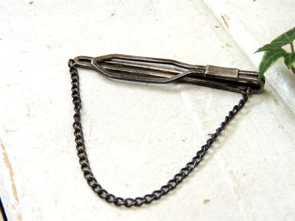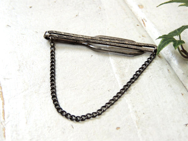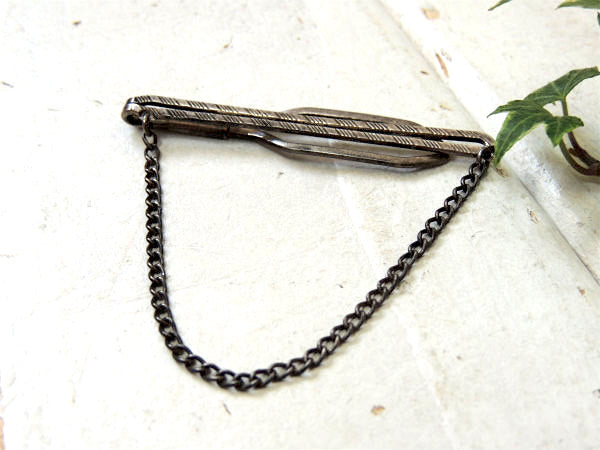アメリカ西海岸・サンフランシスコで見つけました・・・アンティーク''シンプルデザイン"2本ライン+チェーン付き・細かな模様の大人感じるお洒落なタイピン(タイクリップ)です。