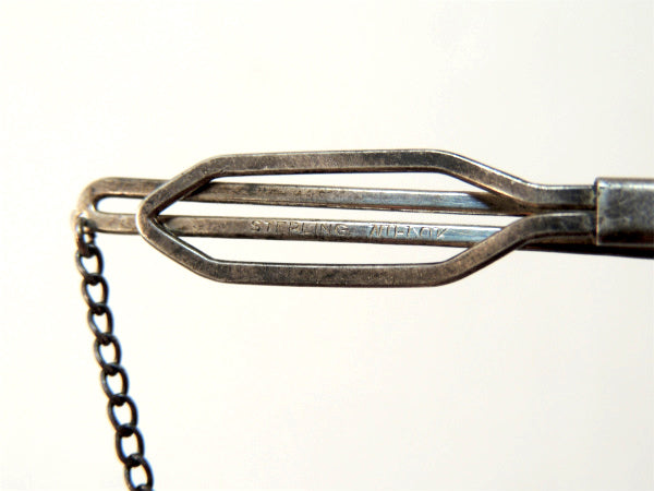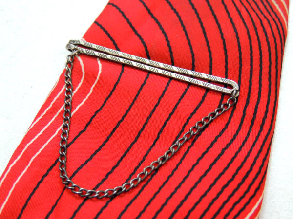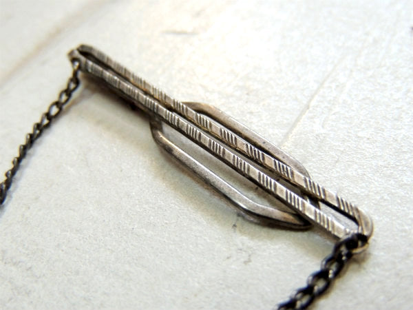 【細工模様・ダブルライン】チェーン付き・アンティーク&ヴィンテージ・タイピン・シルバー・USA