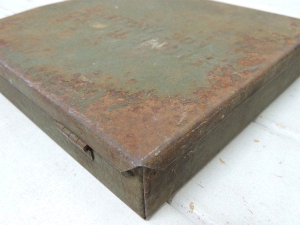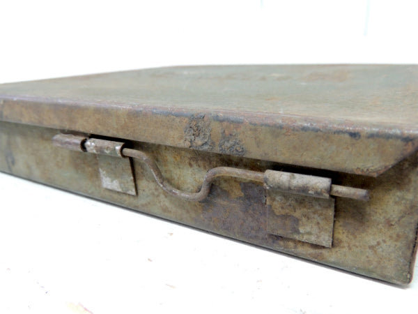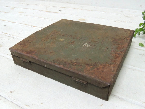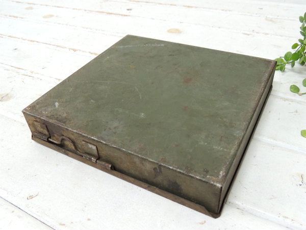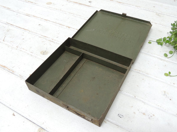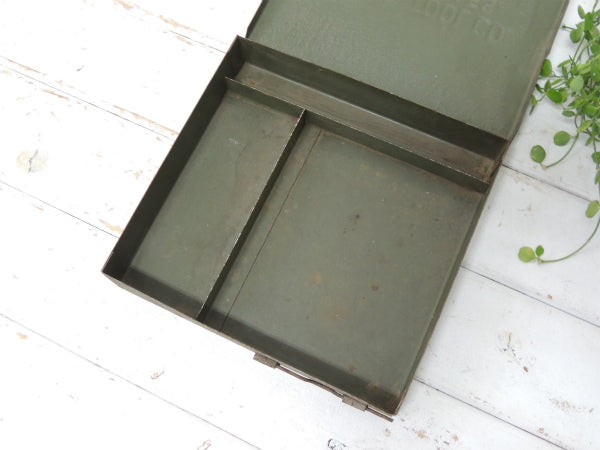 アメリカ西海岸・カリフォルニアで見つけました・・『PLOMB TOOL CO』のカーキ色・メタル製・仕切り付き・ヴィンテージ・工具ケースです。