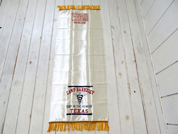 USミリタリー テキサス CAMP BARKELEY TEXAS サテン地 40's ヴィンテージ バナー スカーフ USA