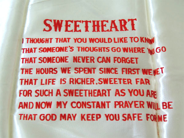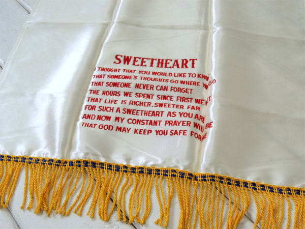 アイボリー色のサテン生地に、片方端に【CAMP BARKELEY DEEP IN THE HEART OF TEXAS】の文字プリント&ギリシア神話に登場する青年神“ヘルメース”が持つ杖になり世界各国の医療機関で用いられている“ケーリュケイオン”ロゴ、反対側端に【SWEETHEART】の英文がプリントが入っております。