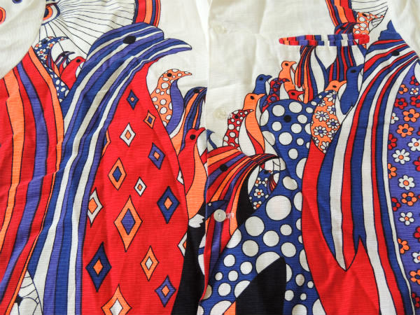 【Maluna Hawaii】ヴィンテージ・アロハシャツ・サイケ柄・鳥・フラワー・ハワイ