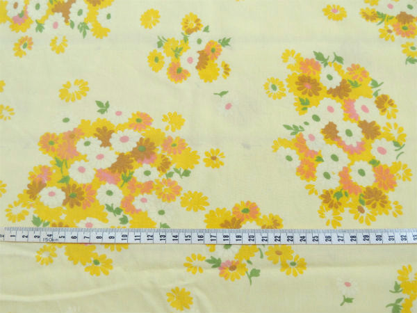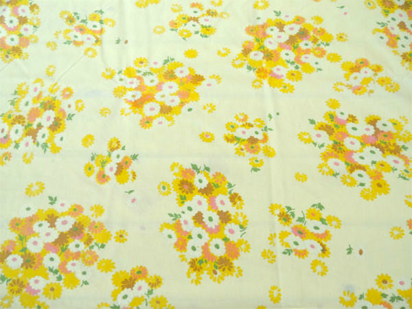 【Pacific】クリームイエロー・花柄・ヴィンテージ・USEDフラットシーツ(1/2) USA