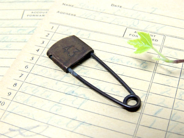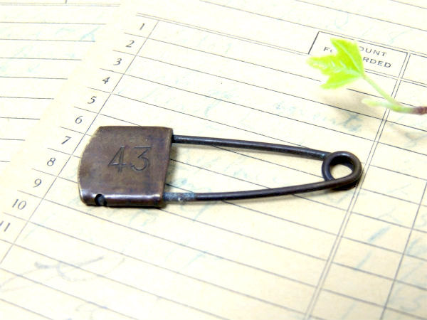 43 ナンバー入り 真鍮製 1950's アンティーク ランドリーピン 安全ピン USA