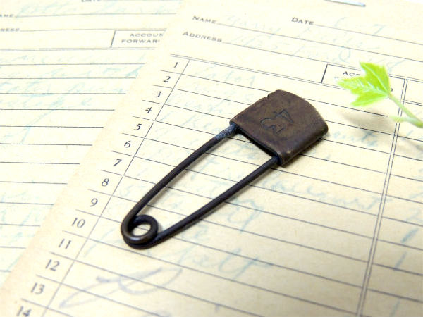 アメリカのクリーニング店で使われていた、ナンバー入りの小さな安全ピンです。