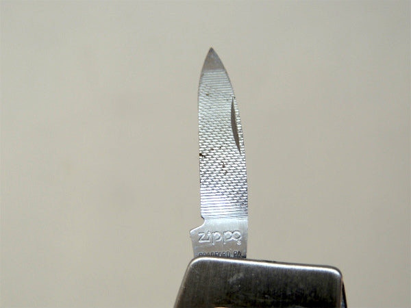 ナイフ根本に【ZIPPO BRADFORD PA】、ヤスリ根本に【ZIPPO BRADFORD PA】と刻印が入っております。