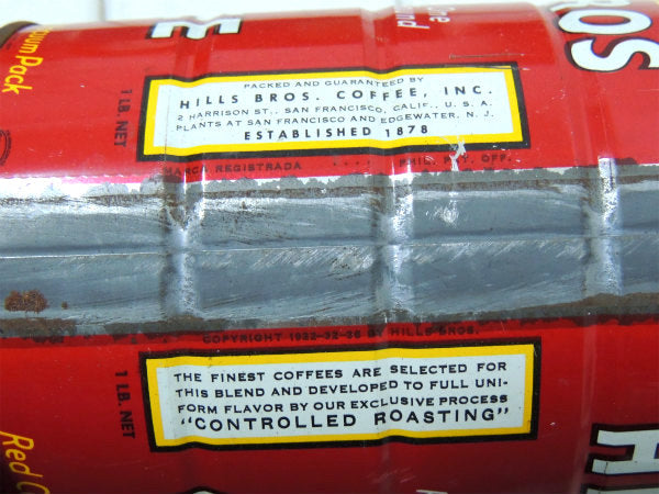 1878年にアメリカ・サンフランシスコで誕生した老舗コーヒーブランド『HILLS BROS COFFEE(ヒルスコーヒー)』のヴィンテージ・ティン缶です。