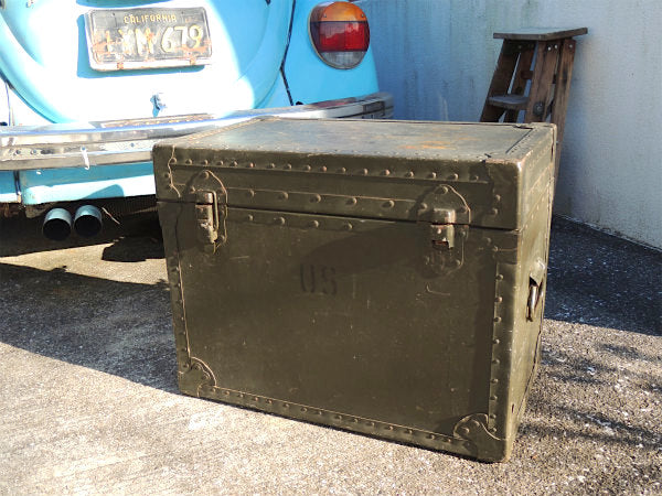 1966【ARMY】ミリタリー・カーキ・ヴィンテージ・軍用木箱・トランク・木箱・ウッドボックス US