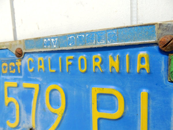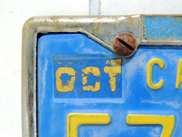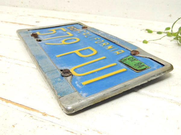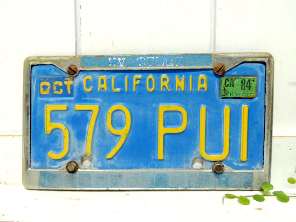 【カリフォルニア・579 PUI】ヴィンテージ・ブルー&イエロー・ナンバープレート・フレーム付き