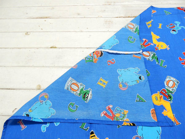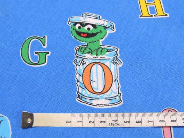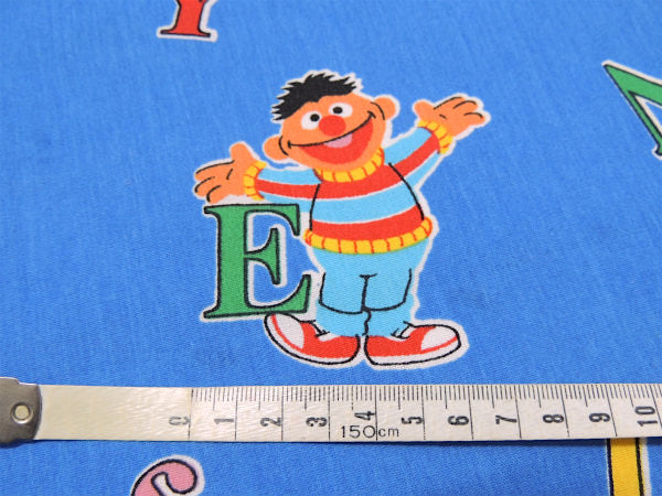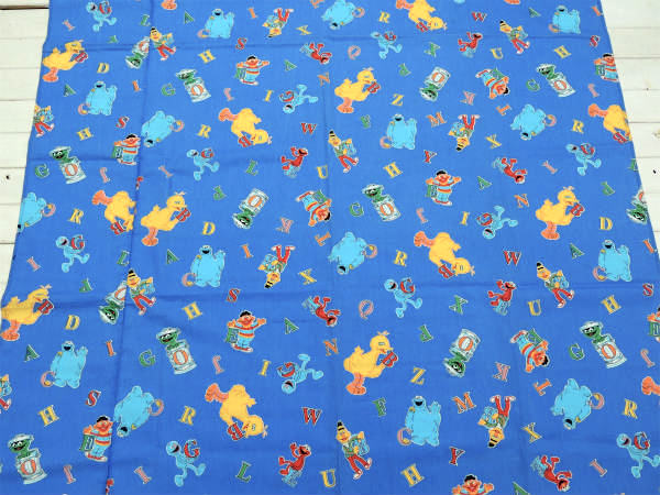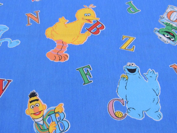 【セサミストリートの仲間たち】コバルトブルー・アルファベット柄・ユーズドシーツ・キャラクター生地