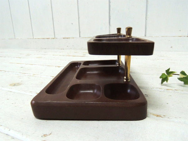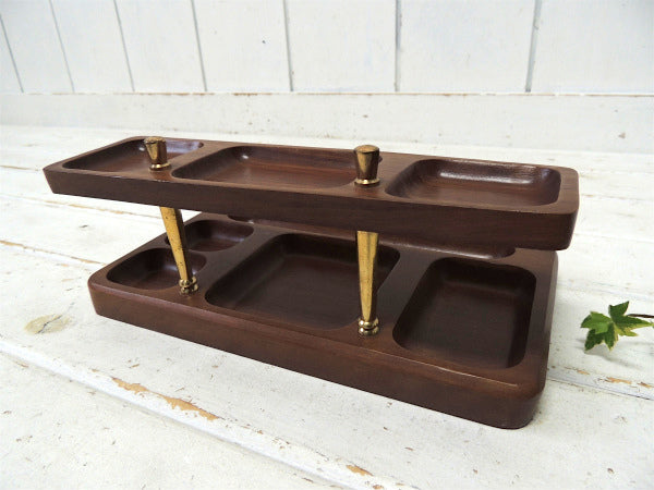 木製トレイにゴールドカラーの支柱が施され、ミッドセンチュリー時代を物語るクラシックなデザインです。