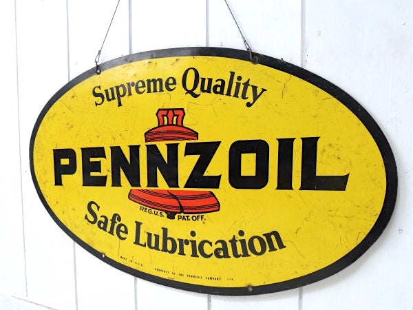 PENNZOIL ペンズオイル アドバタイジング・ヴィンテージ・両面 サイン・楕円型・店頭用・看板