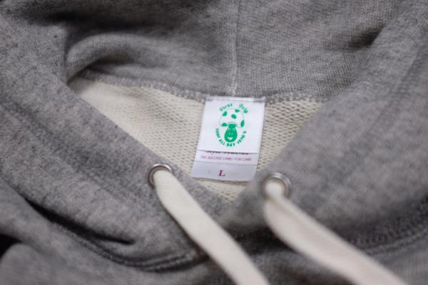 ボディはコットン100%・裏はパイル製、柔らかな風合いのミディアムウェイト。
