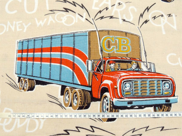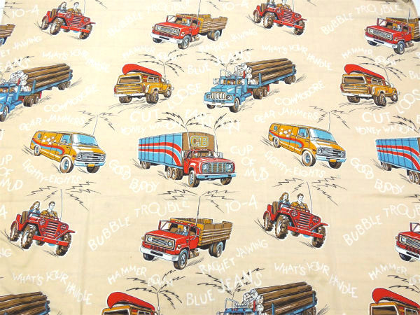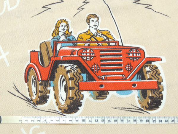 アメリカ西海岸・カリフォルニア州で見つけました・・アメ車柄のヴィンテージ・ベッドスプレッド(ベッドカバー)です。