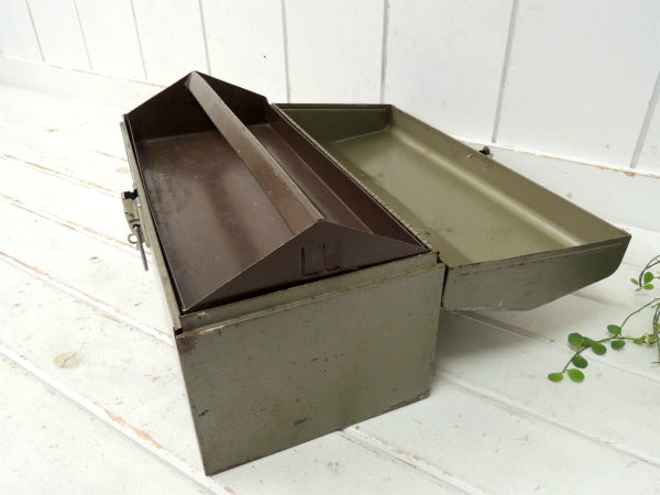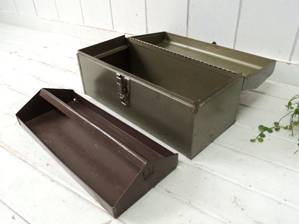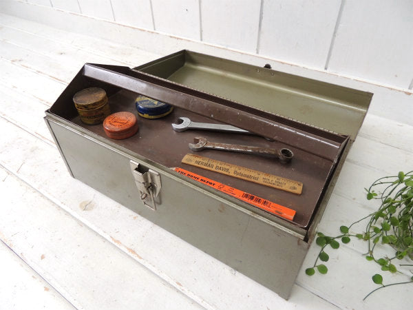 ゴールドトーン・メタル製・2段式・ヴィンテージ・ツールボックス・ツールケース・工具箱・道具箱