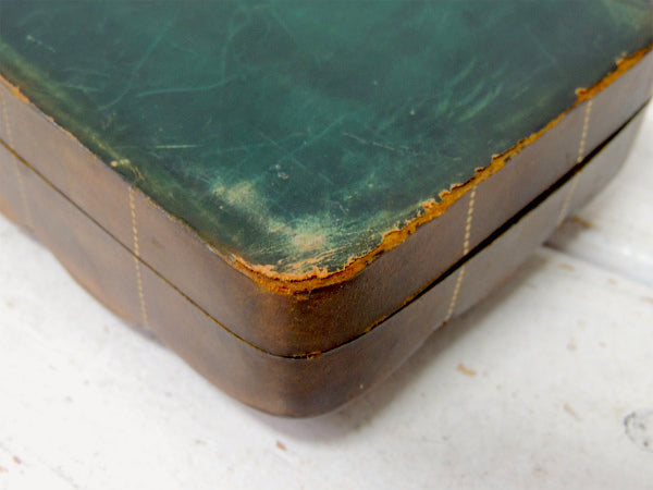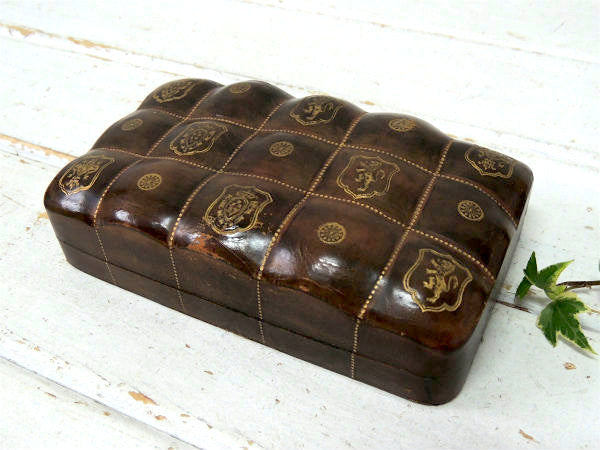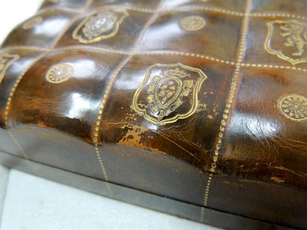 アメリカ西海岸・サンフランシスコで見つけました・・イタリア製の紋章柄・レザー製・アンティーク・ジュエリーケース(宝石箱・ジュエリーボックス)です。