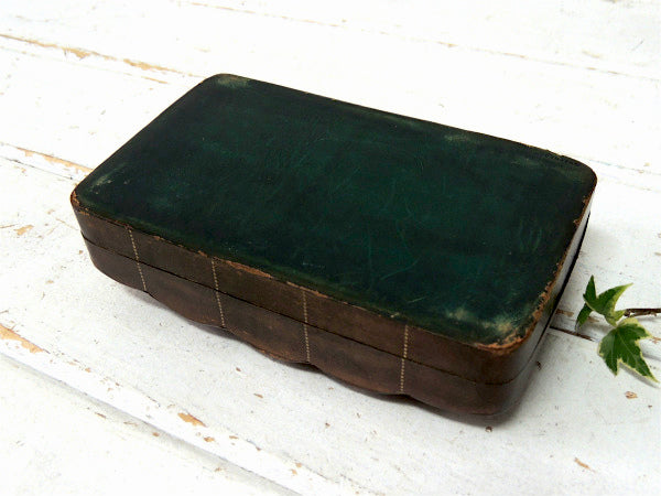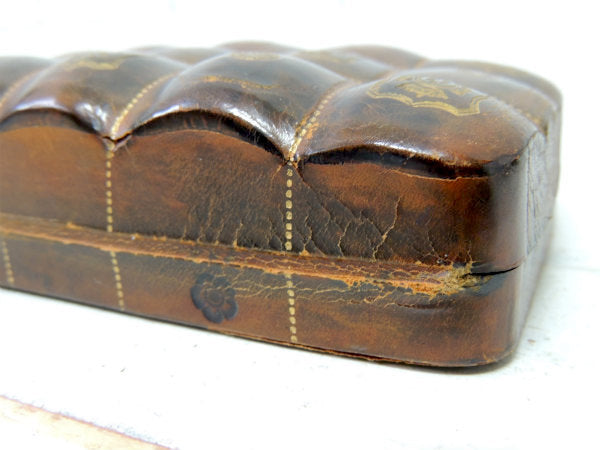 ITALY 革 イタリア レザー 型押し 紋章柄 アンティーク 宝石箱 ジュエリーボックス&ケース