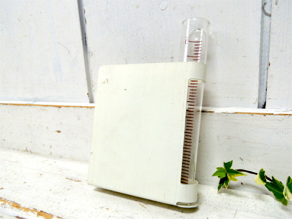 スタンド式の目盛付きブリキプレートに、ガラス製の試験管が付いております。