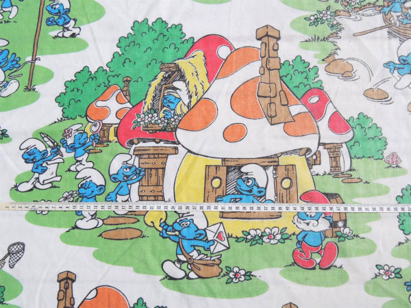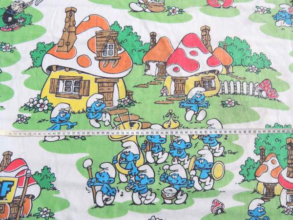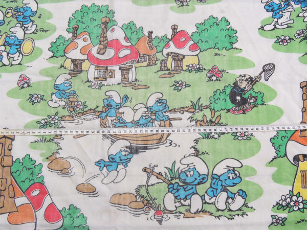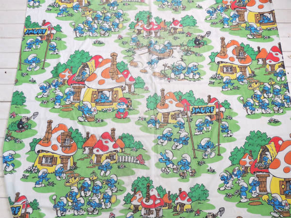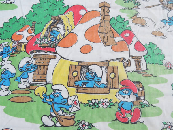 【スマーフ】SMURF・グリーンビレッジ柄・ヴィンテージ・ユーズドシーツ(ボックスタイプ) USA