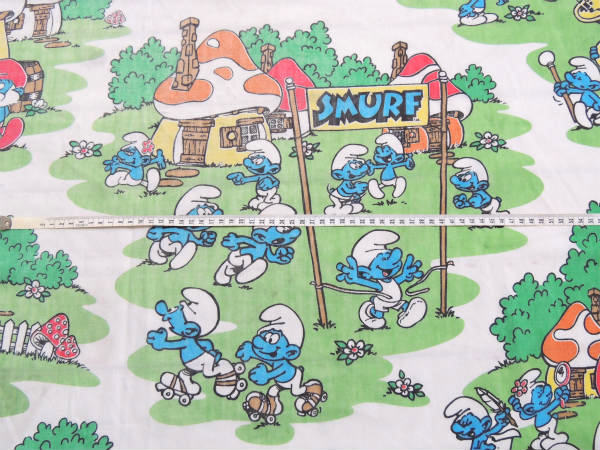 アメリカ西海岸・カリフォルニア州で見つけました・・ベルギーで誕生したヨーロッパの森に住む小さな妖精のキャラクター『スマーフ(SMURF)』のヴィンテージ・USEDフィットシーツです。(ツインサイズ)