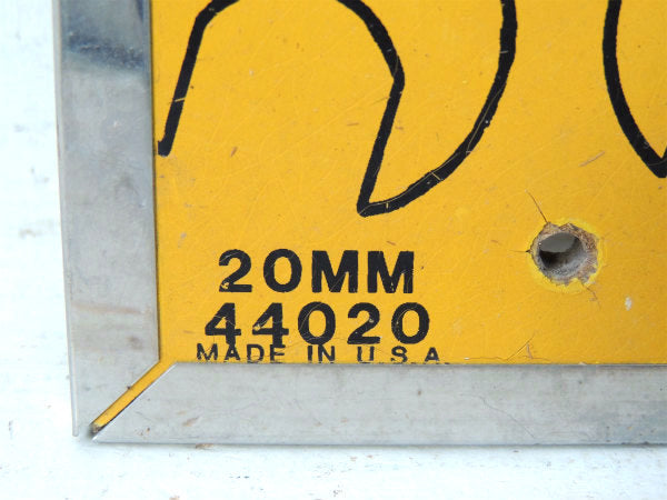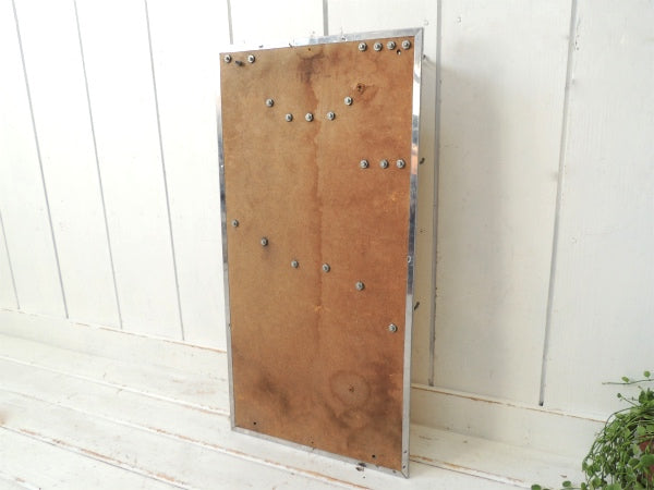 イエローのボードは木製、回りはメタル製で囲われており、壁掛け用のビス穴は6箇所ございます。