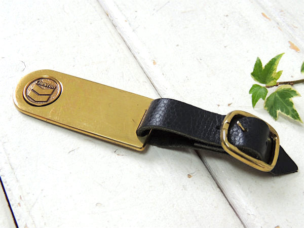 アメリカ西海岸・サンフランシスコで見つけました・・Chevron Corporation シェブロン・オイルカンパニー・アドバタイジング・ヴィンテージ・ずっしり重たいゴールドプレート+レザー・バックタグ (旅行用・タグ・ネームタグ・キーホルダー)です。