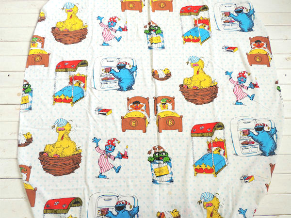 【セサミストリートの仲間たち】ベッド&パジャマ柄・ヴィンテージ・ユーズドシーツ(ボックスタイプ)