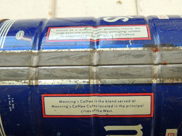【Manning's COFFEE】ブリキ製 ヴィンテージ コーヒー缶 ティン缶 USA