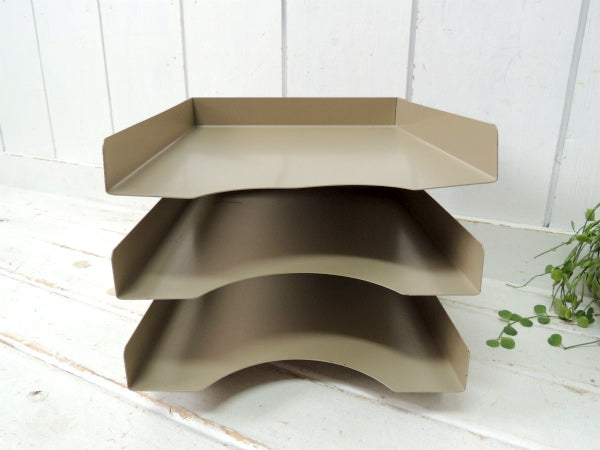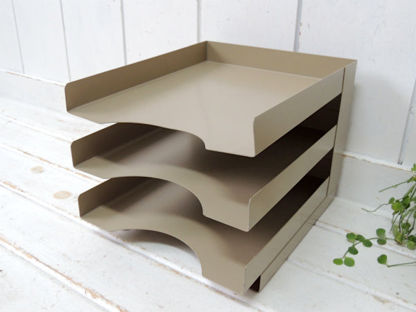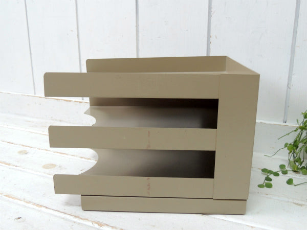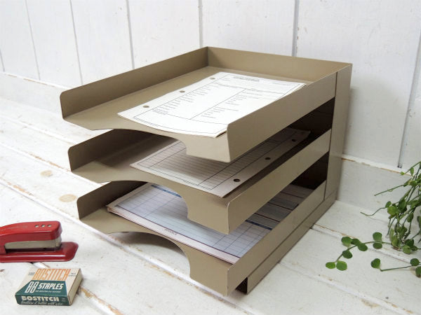 アメリカ西海岸・サンフランシスコで見つけました・・ベージュ色のメタル製・3段式・ヴィンテージ・デスクトレイです。