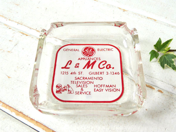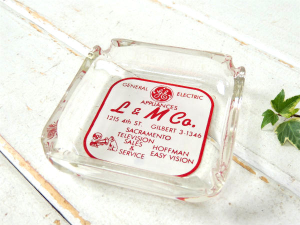 アメリカ西海岸・サンフランシスコで見つけました・・GEで知られる世界最大のアメリカの総合電機メーカー"ゼネラル エレクトリック(GENERAL ELECTRIC)"ビクター犬 ニッパー・アドバタイジング・ガラス製・ヴィンテージ・灰皿(アシュトレイ)です。