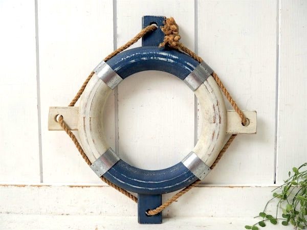 マリン インテリア ディスプレイ・編み込みロープ・ヴィンテージ・浮き輪・ライフブイ・看板 ブイ US