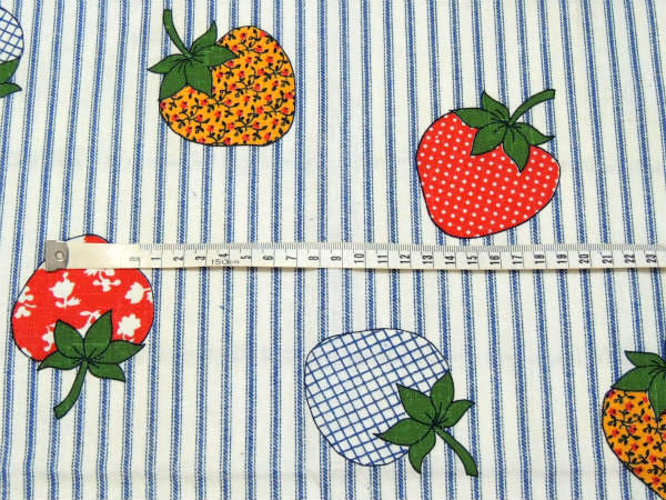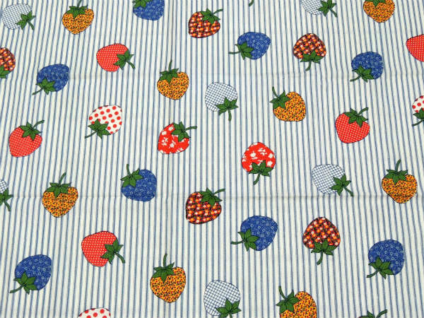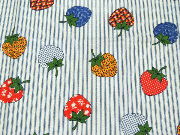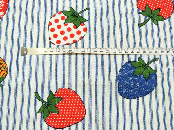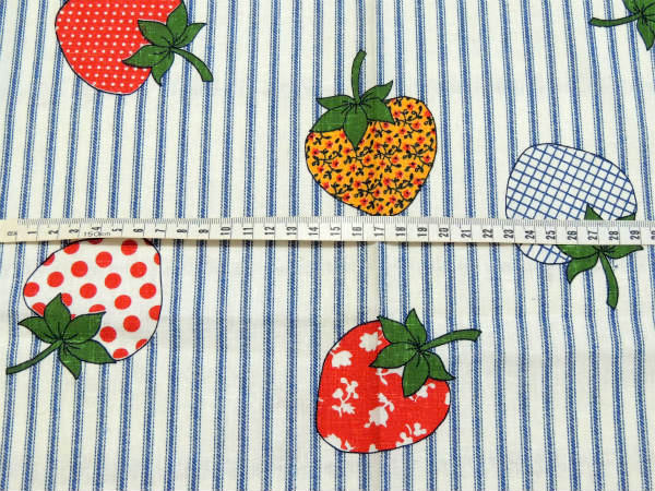 レトロポップなイチゴ柄・デッドストック・ヴィンテージ・ファブリック・生地・テキスタイル・93×77