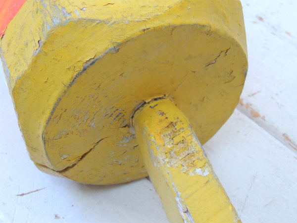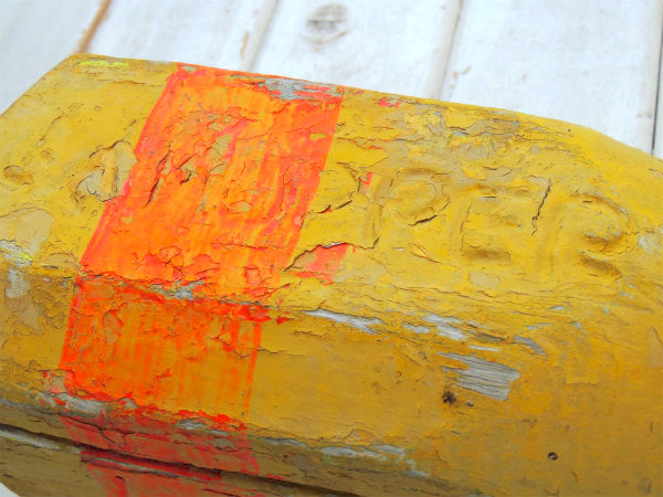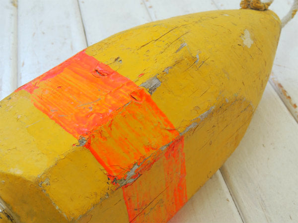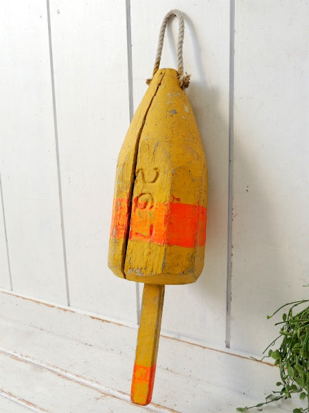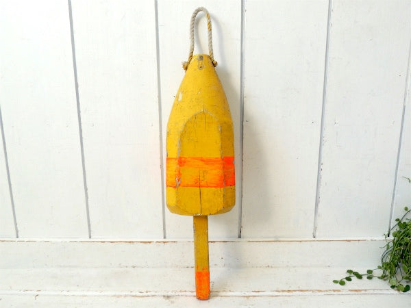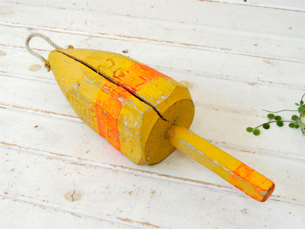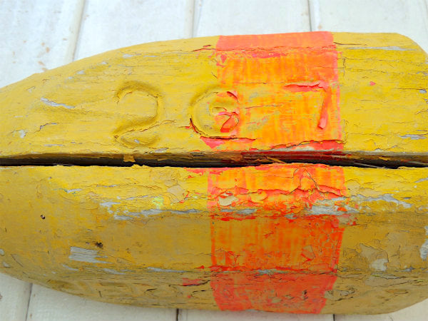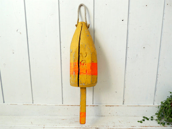 マリン・ナンバー入り・イエロー・木製・ヴィンテージ・ロブスター・ブイ・トラップ・浮き・インテリア