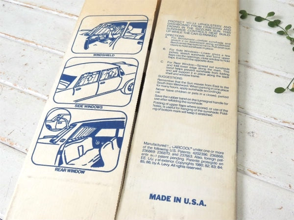 車のフロントガラスやリアウィンドの日除けに使う、厚紙製のサンシェードです。
