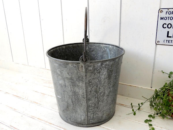 シャビー・ブリキ製・ヴィンテージ・バケツ・ガーデニング USA ガーデニング雑貨 店舗ディスプレイ