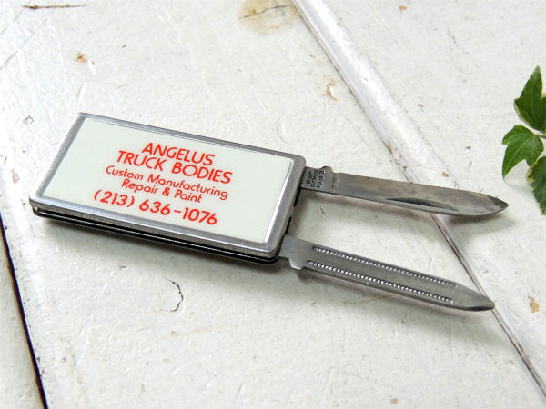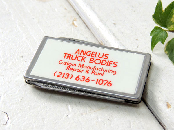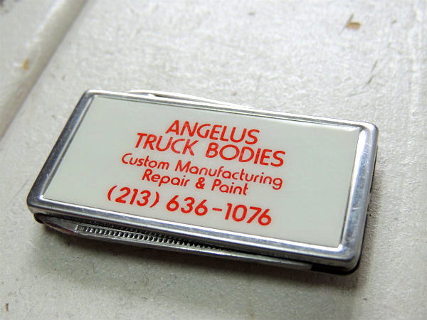 アメリカ西海岸・カリフォルニアで見つけました・・”ANGELUS TRUCK BODIES”アメ車・トラック・企業物・アドバタイジング・ナイフ&ヤスリ付き・ヴィンテージ・マネークリップです。
