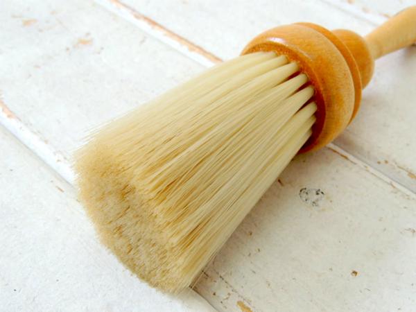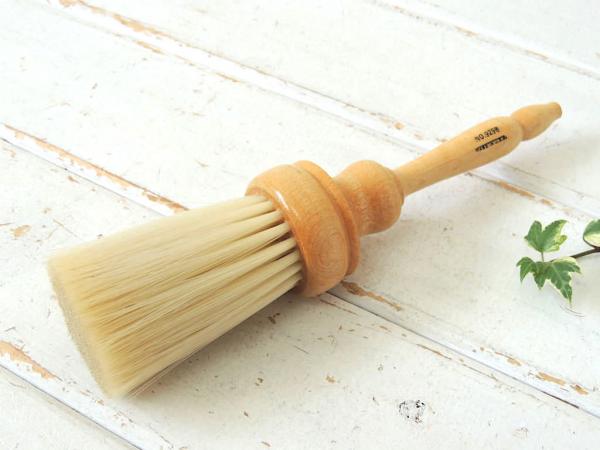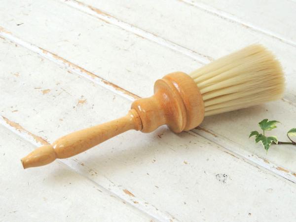 クラシカルなデザインの木製ハンドル、ブラシは滑らかな肌触りの毛(動物)が使用されています。