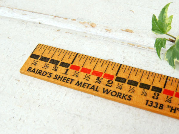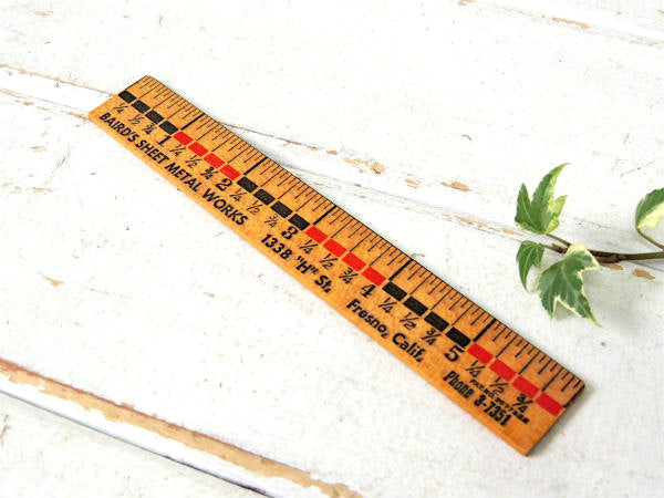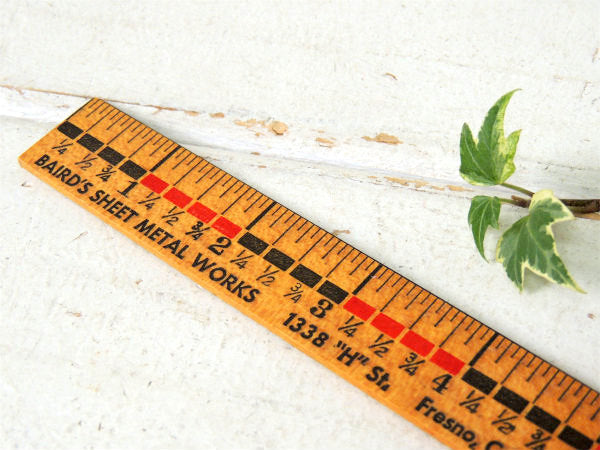 アメリカ西海岸、カリフォルニアで見つけました・・『BAIRD'S SHEET METAL WORKS/Fresno,Calif』のクールなデザイン・アドバタイジング 木製・ヴィンテージ・定規(ルーラー)です。