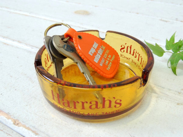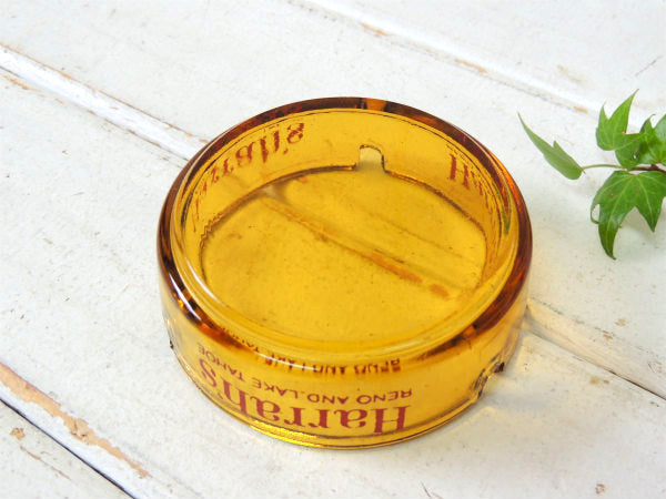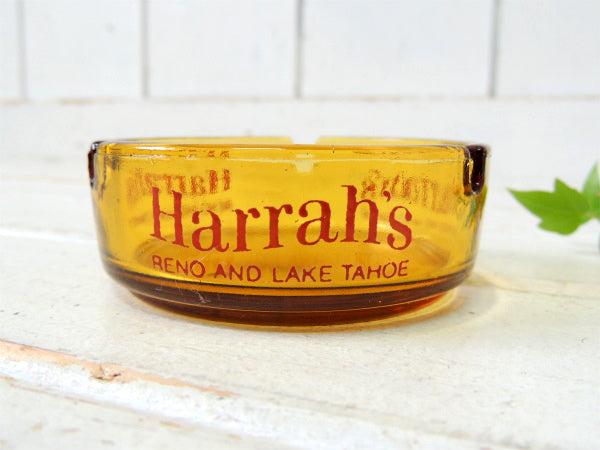 アメリカ南部・テキサス州・ダラスで見つけました・・Harrah's”レイク・タホ"ハラーズ・アンバー・ガラス製・ヴィンテージ・アドバタイジング・灰皿(アシュトレイ)です。