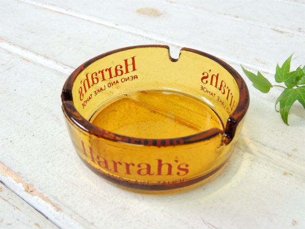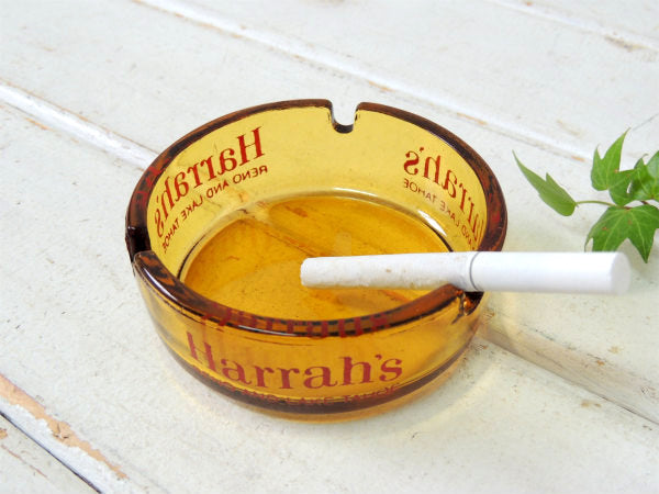 アンバー色ガラス製で、【 Harrah's Reno and Lake Tahoe】とシンプルな赤茶色カラーの文字が入っております。